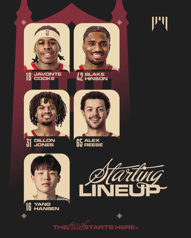 混音队首发阵容不变:辛森、库克、亚历克斯-里斯、狄龙-琼斯、杨瀚森!南湾湖人首发:RJ-戴维斯、马农、沃特森、德鲁-蒂米、凯勒-凯利。南湾湖人替补席还坐着科比-巴夫金,2023年NBA首轮15号秀,上个月刚被篮网裁掉。